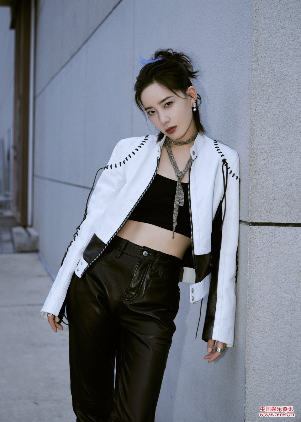 李斯丹妮藍色發(fā)尾搭配機車(chē)夾克 叛逆時(shí)髦酷girl