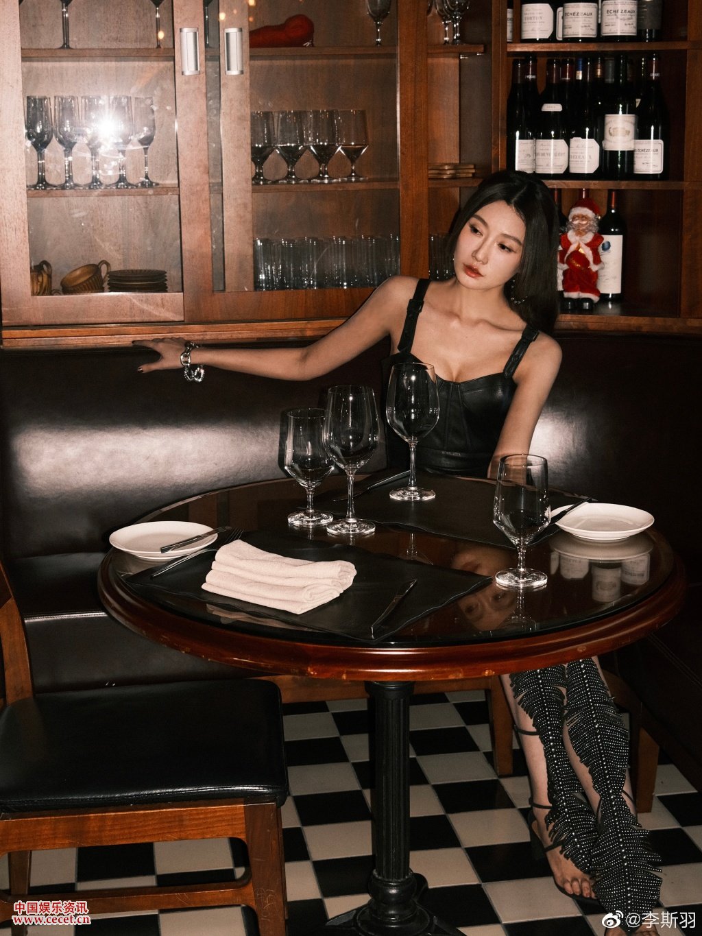 李斯羽皮質(zhì)吊帶短裙照 夸張造型氣場(chǎng)十足