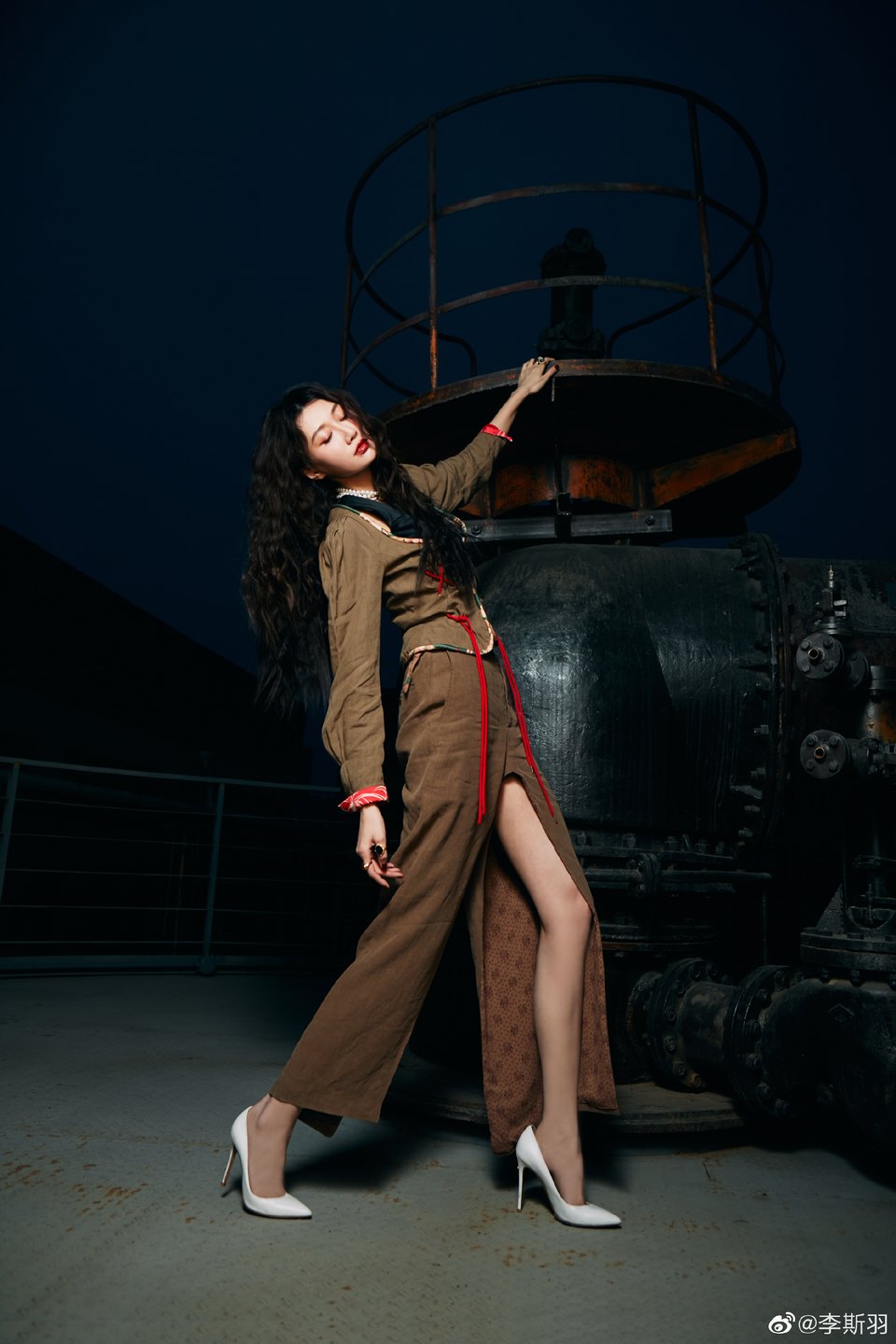 李斯羽灰綠前開(kāi)叉長(cháng)裙 暮色沉沉令人沉迷陶醉