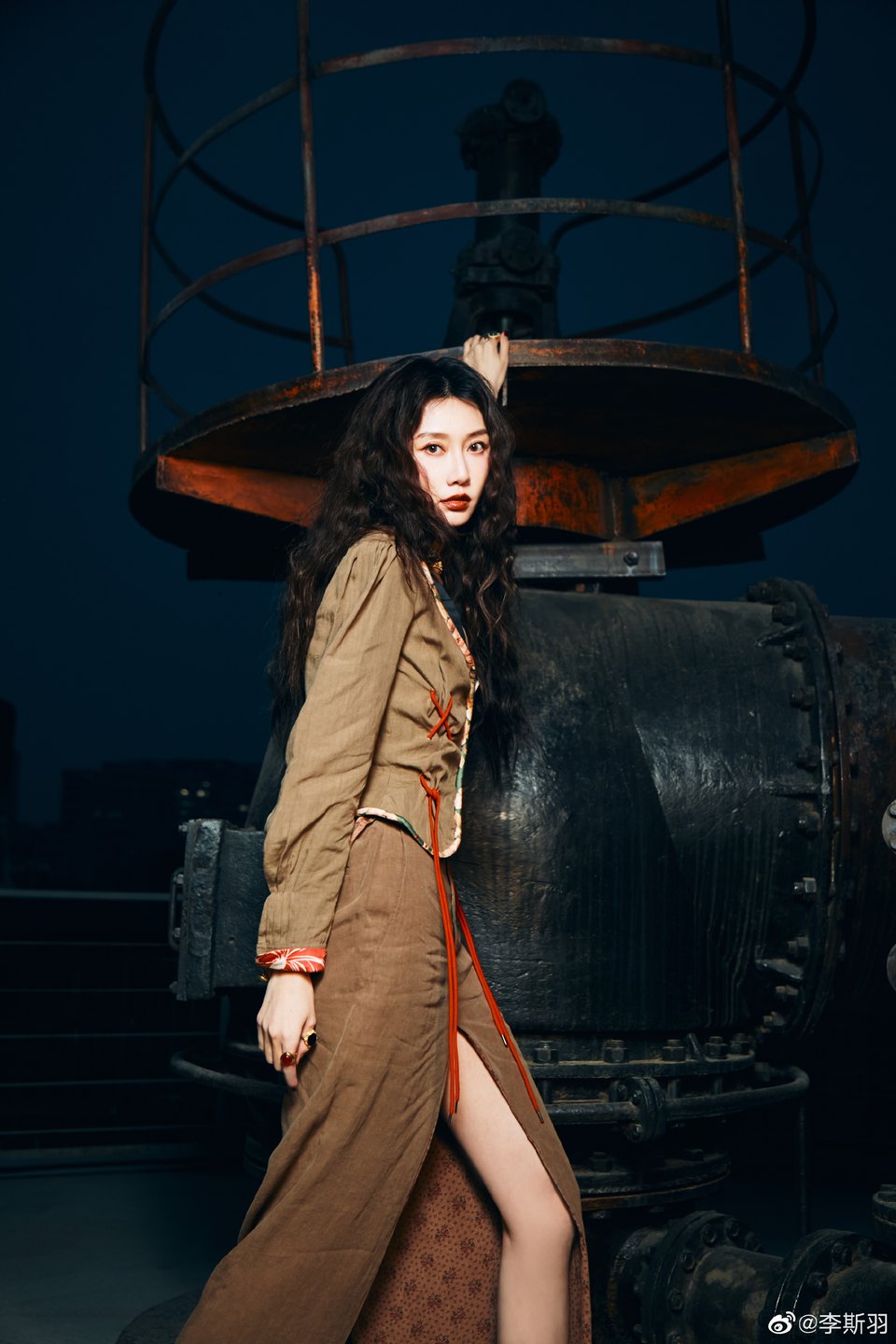 李斯羽灰綠前開(kāi)叉長(cháng)裙 暮色沉沉令人沉迷陶醉