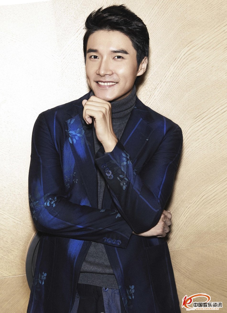 李泰藍色西裝搭配灰色高領(lǐng)衫盡顯暖男風(fēng)范