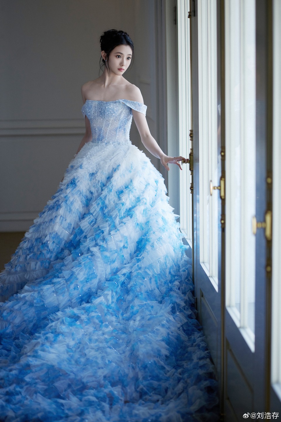 劉浩存抹胸藍色長(cháng)禮裙 逸影流淌映照東方雅趣