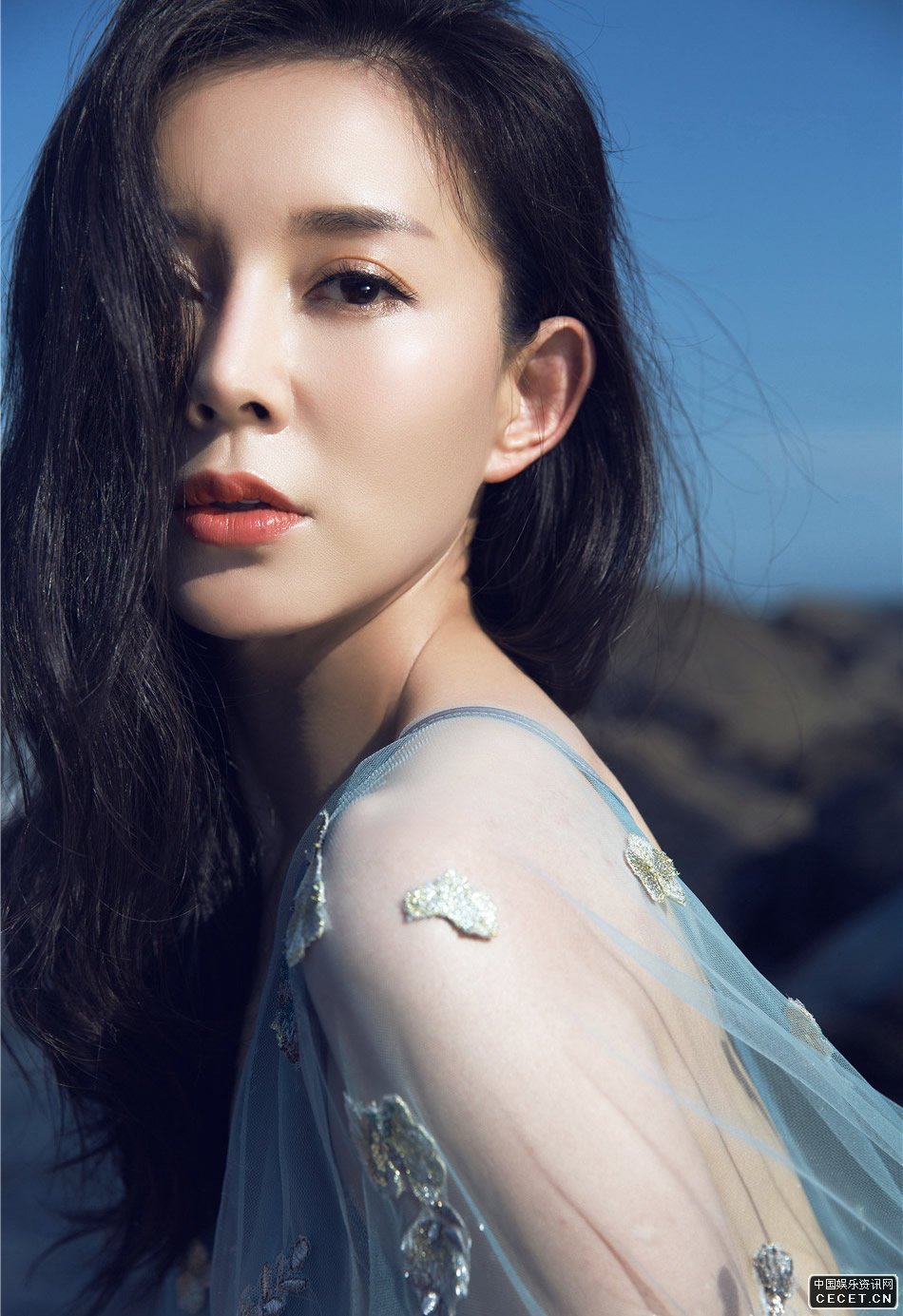 劉敏一襲藍紗遮體寫(xiě)真 膚若凝脂宛若海之精靈