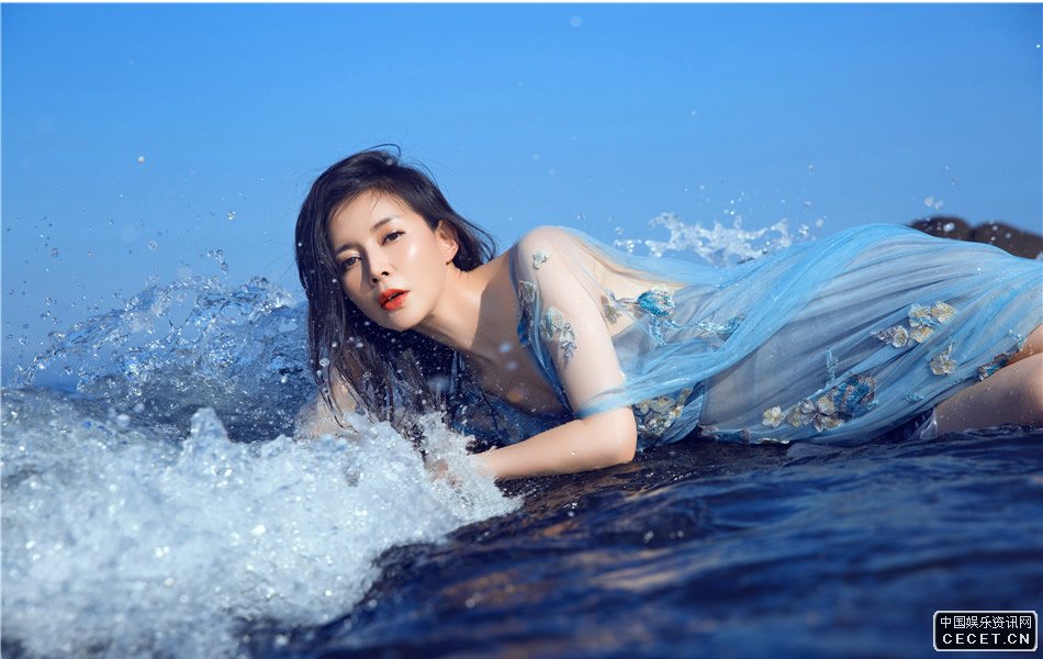 劉敏一襲藍紗遮體寫(xiě)真 膚若凝脂宛若海之精靈