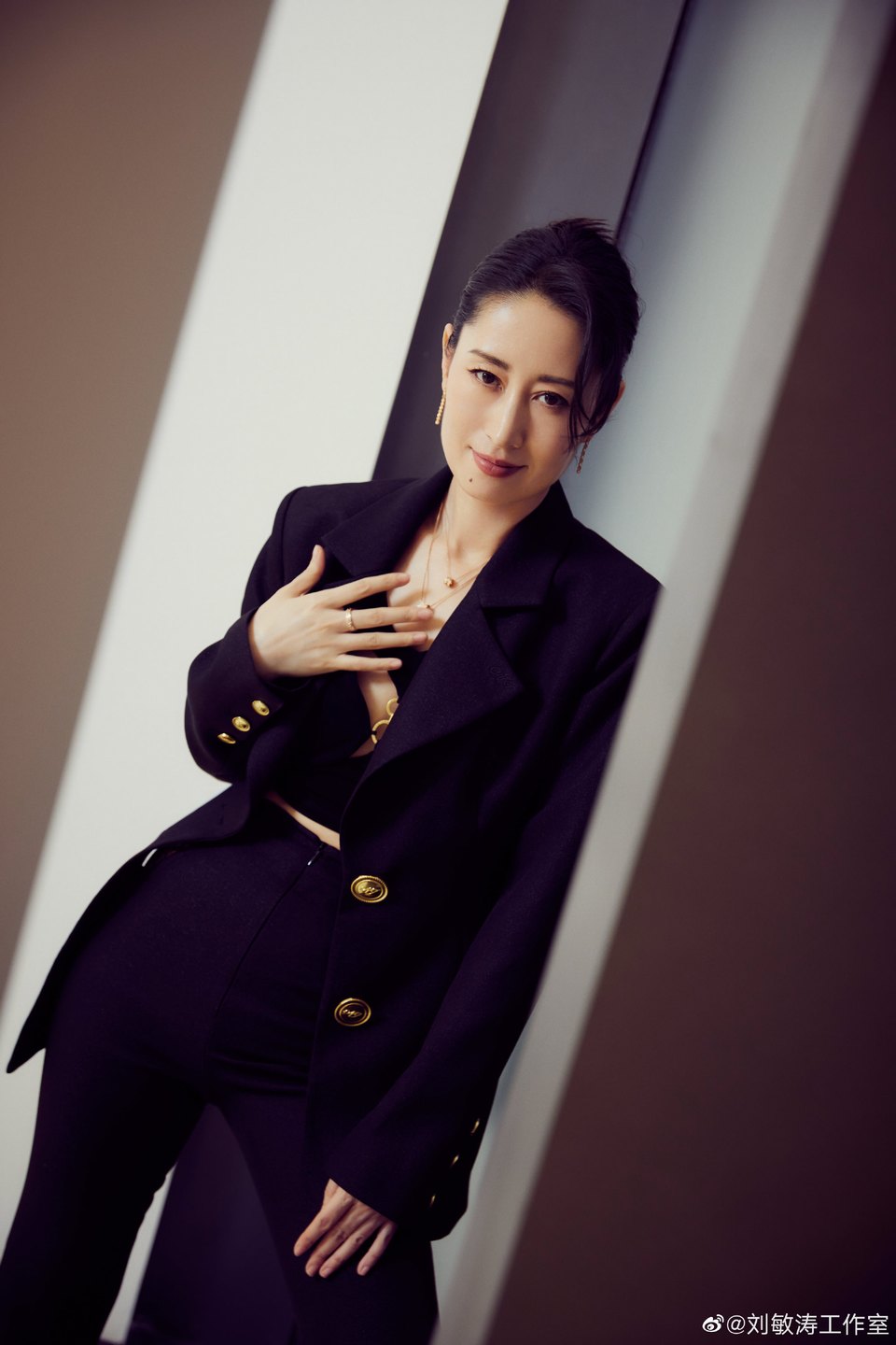 劉敏濤黑色套裝舒適隨性 光影交織魅力無(wú)限