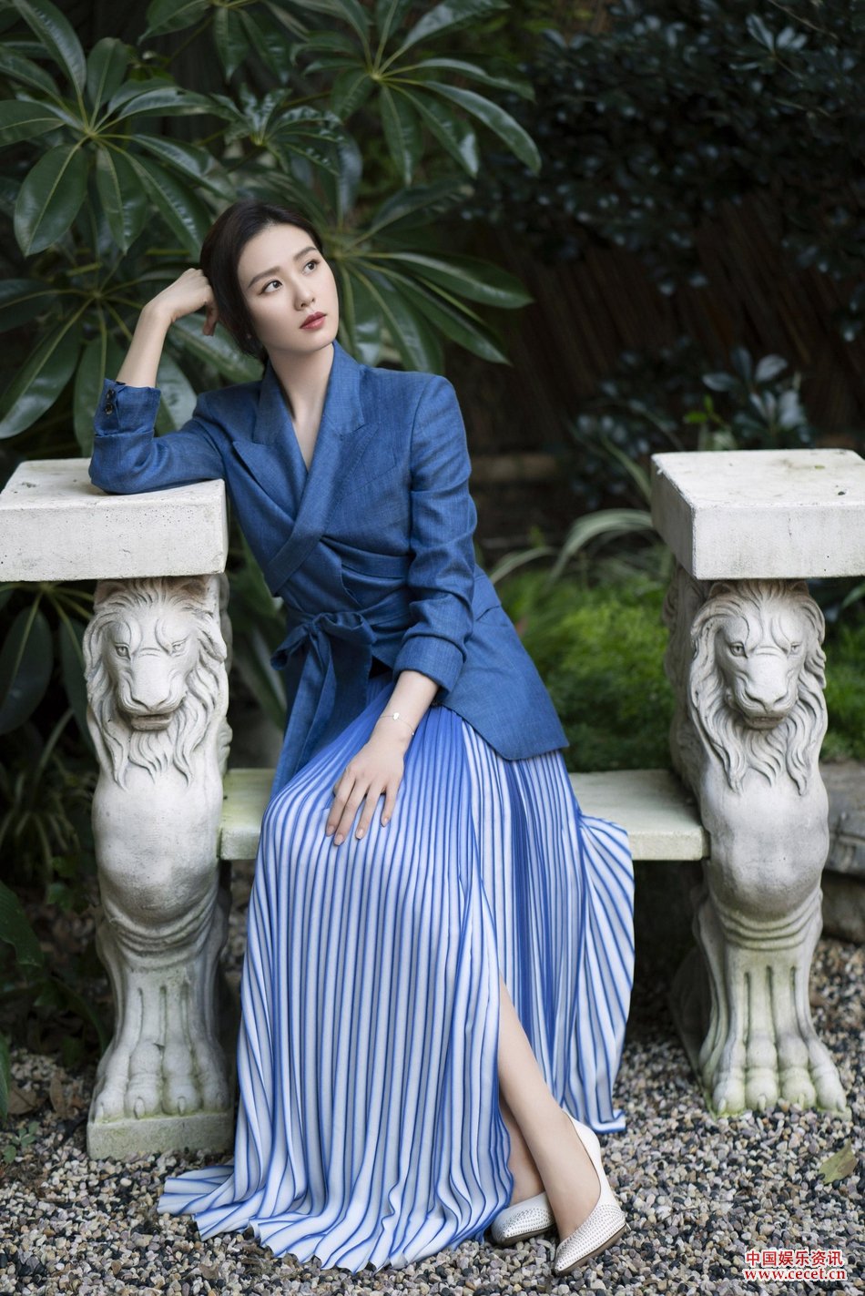 劉詩(shī)詩(shī)條紋長(cháng)裙造型 舉手投足間溫婉大方