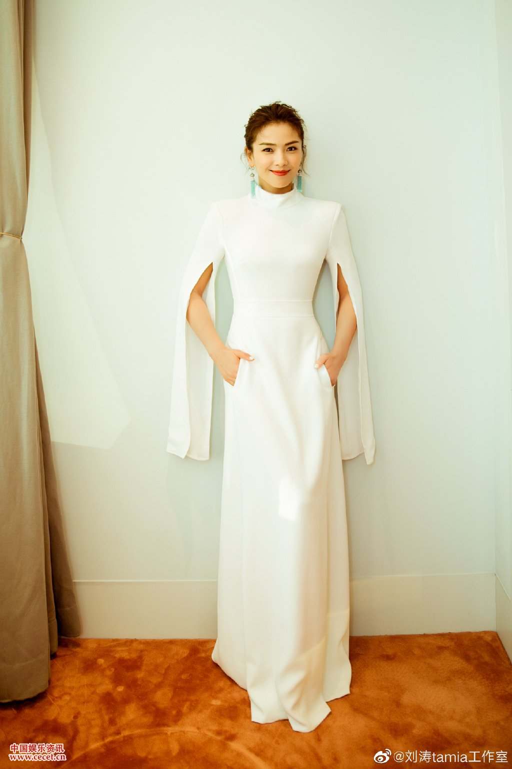 劉濤白衣長(cháng)裙步履盈盈 姿態(tài)優(yōu)雅眼波流轉