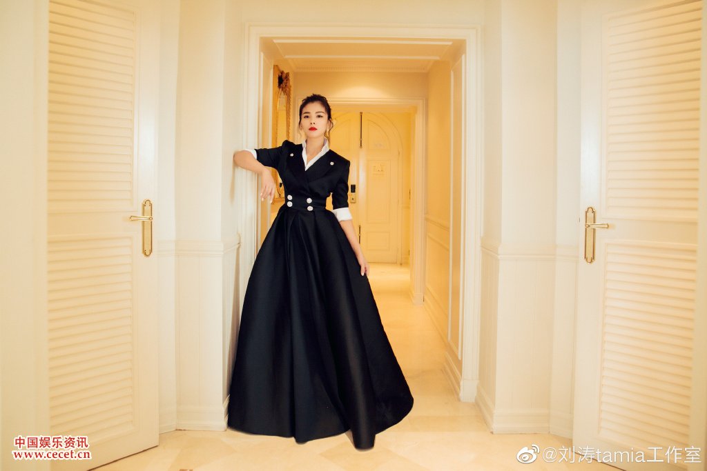 劉濤黑色翻領(lǐng)禮服亮相 知性大方干練從容