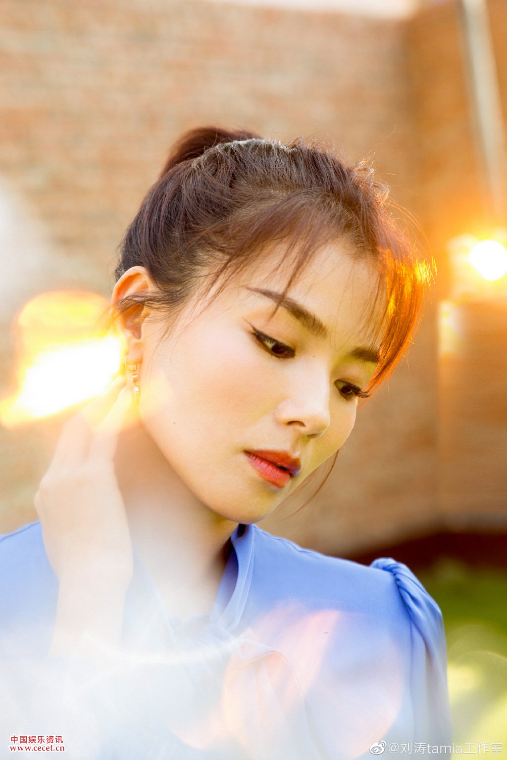 劉濤俏皮小馬尾搭配藍襯衫套裝頻頻散發(fā)魅力