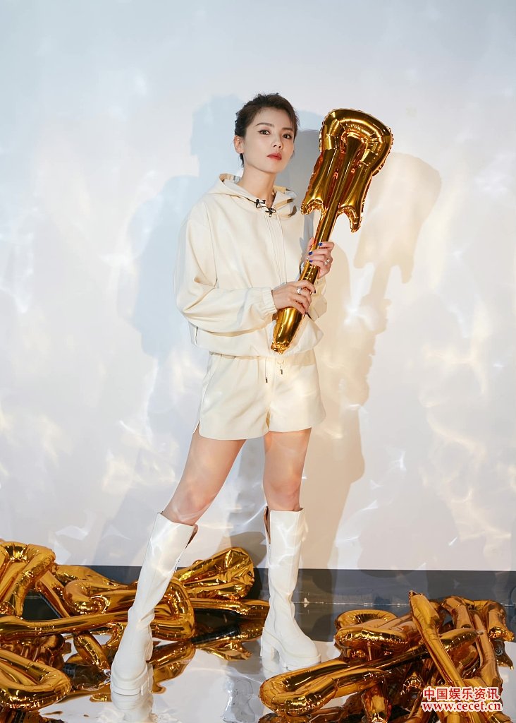 劉濤衛衣套裝搭配過(guò)膝高靴大秀美腿又美又颯