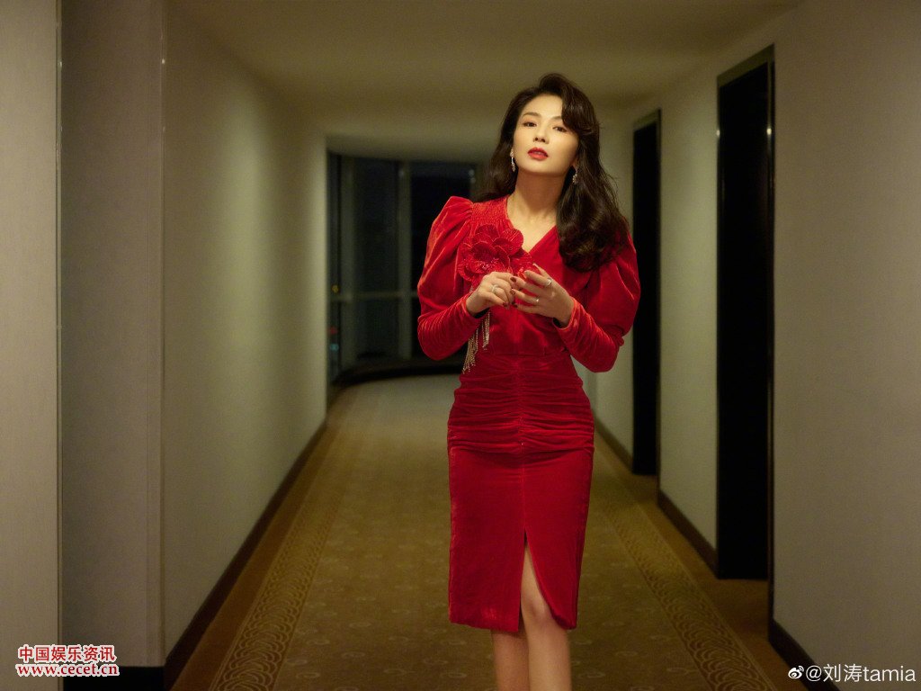 劉濤紅裙裝氛圍感大片 身材姣好美艷迷人