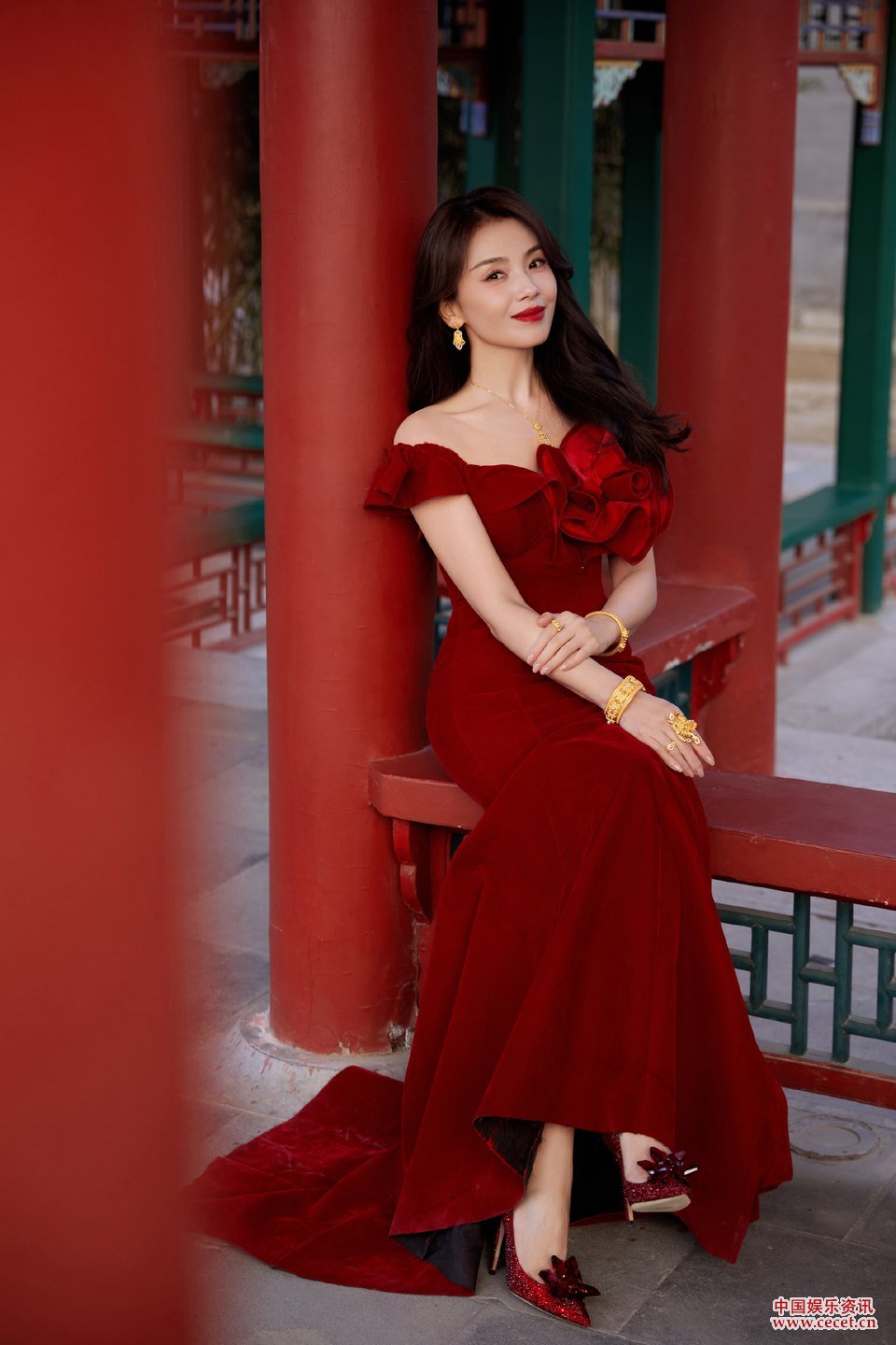劉濤紅墻清影垂憐朱顏 麗人倚黛色邂逅一抹東方紅