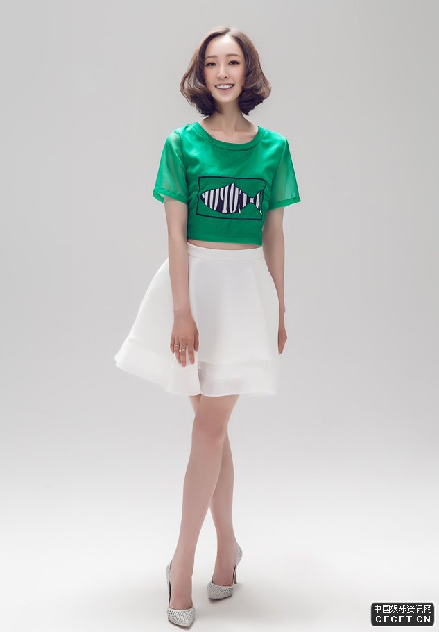 劉恬汝拍攝靈動(dòng)感寫(xiě)真 綠色露腰短T白色紗裙