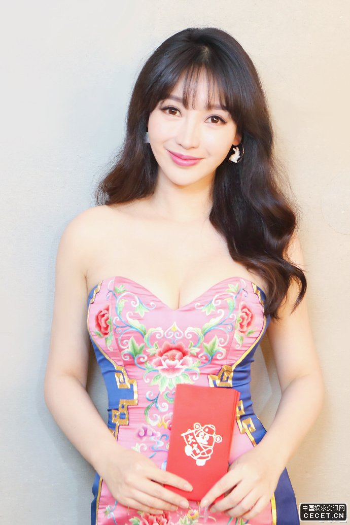 柳巖穿著(zhù)抹胸裝拜年照 照片中身材凹凸有致
