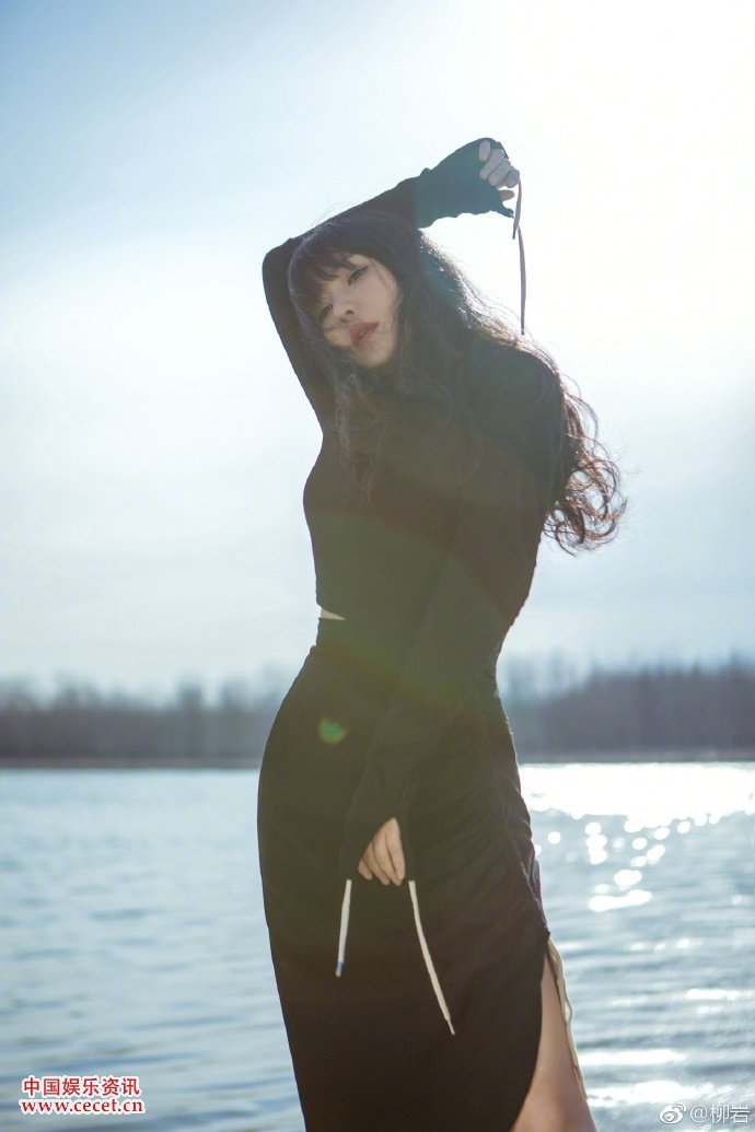 柳巖湖邊美照 穿著(zhù)黑色緊身裙身材凹凸有致