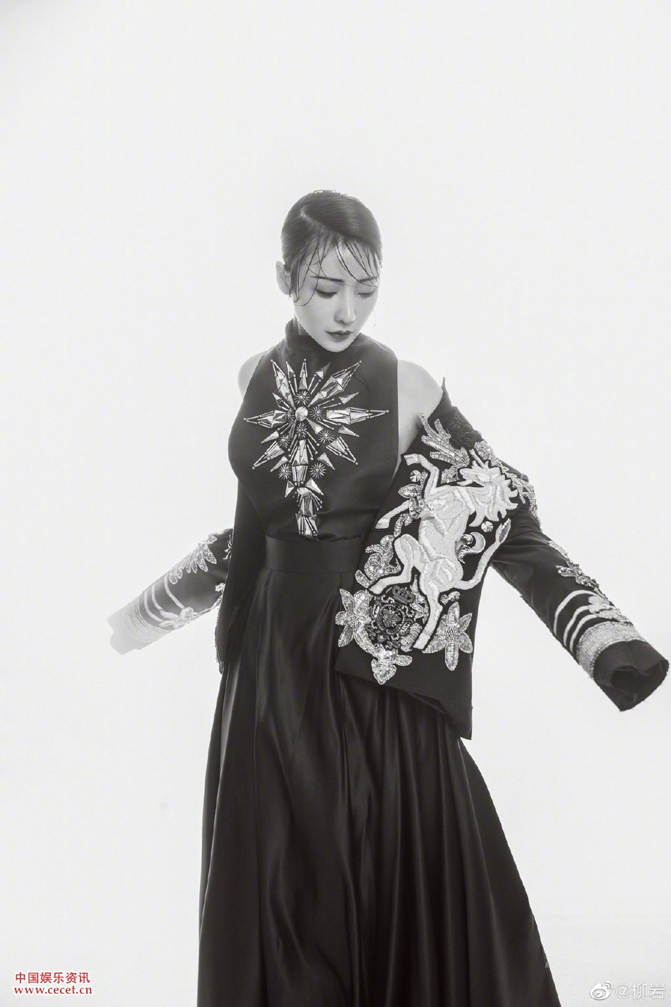 柳巖掛脖黑裙冷艷深沉 外套隨意搭在身上