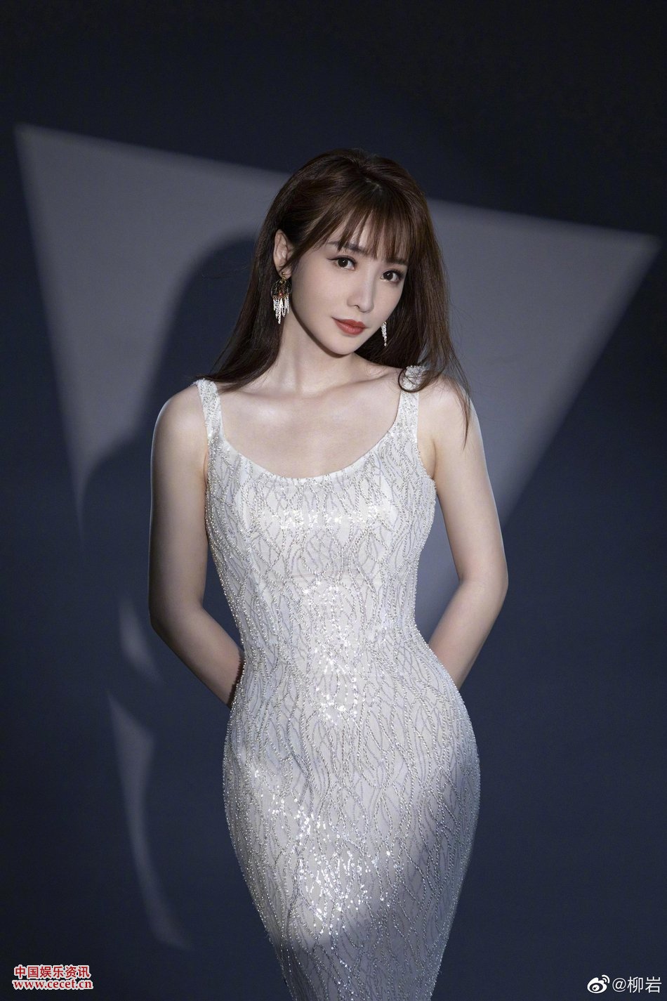 柳巖白色緊身吊帶裙 身材凹凸有致性感十足