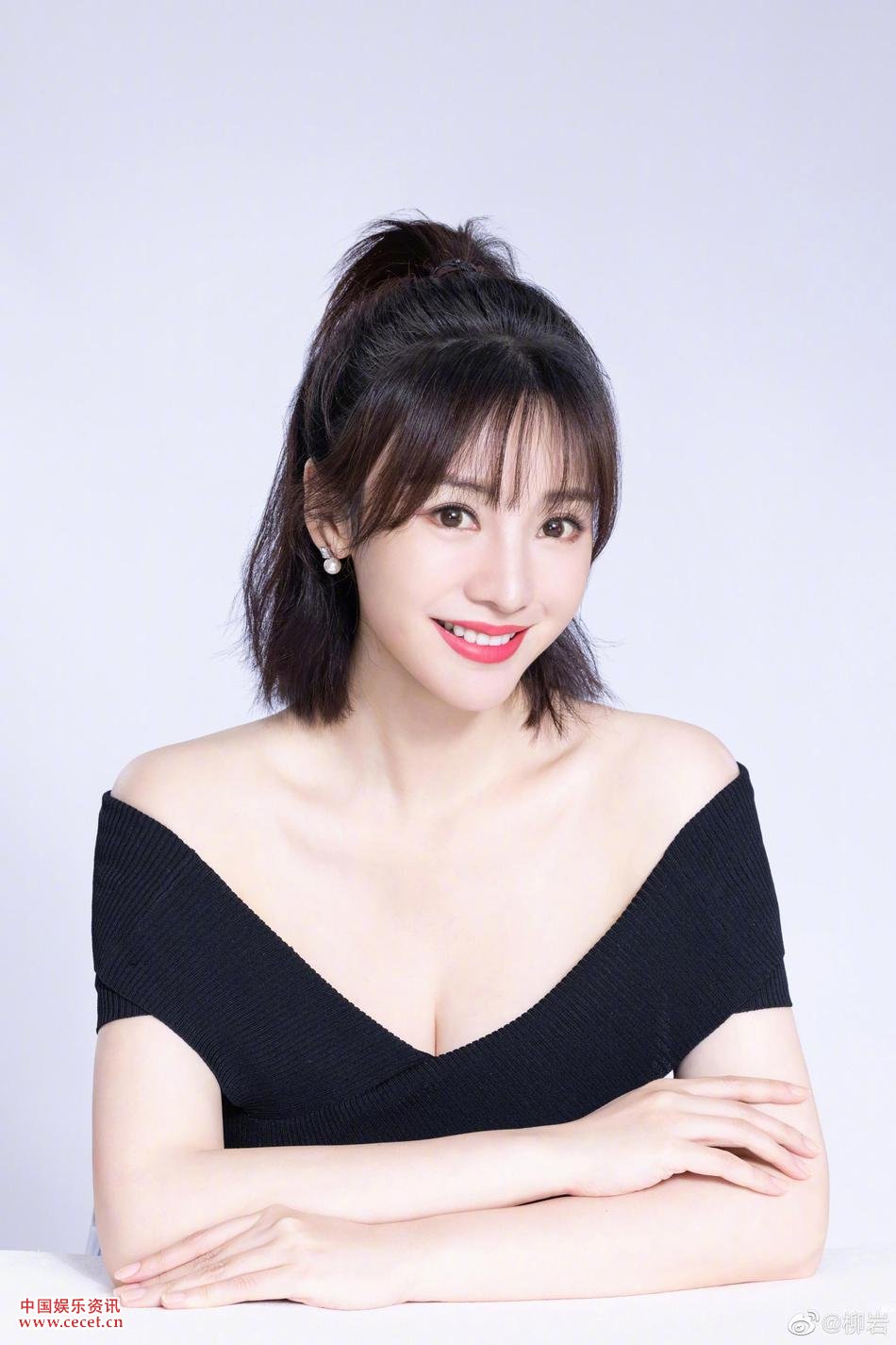 柳巖身穿黑色低胸裝托腮甜笑 大秀迷人鎖骨