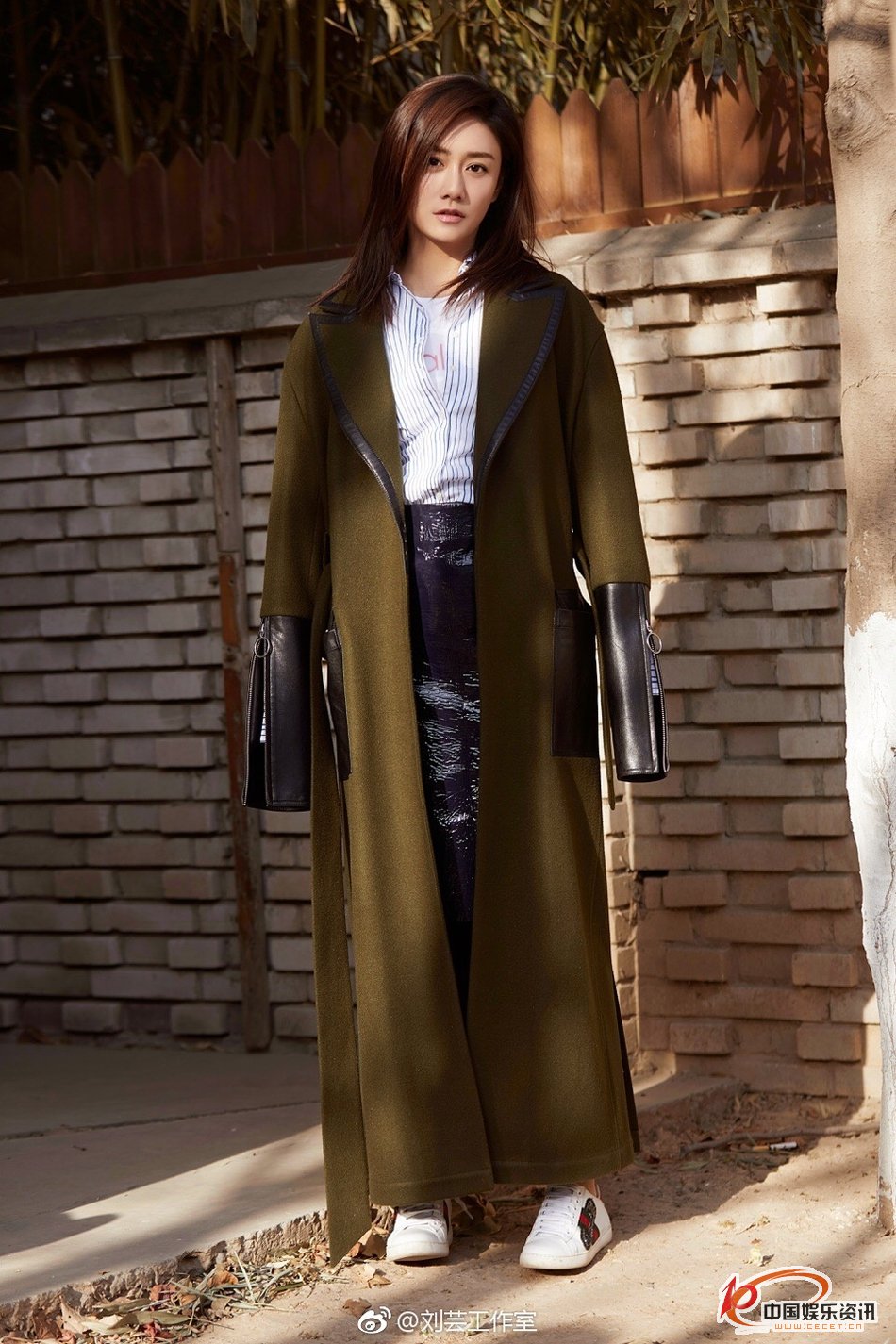 劉蕓穿呢子大衣顯好身材 妝容精致甜美陽(yáng)光