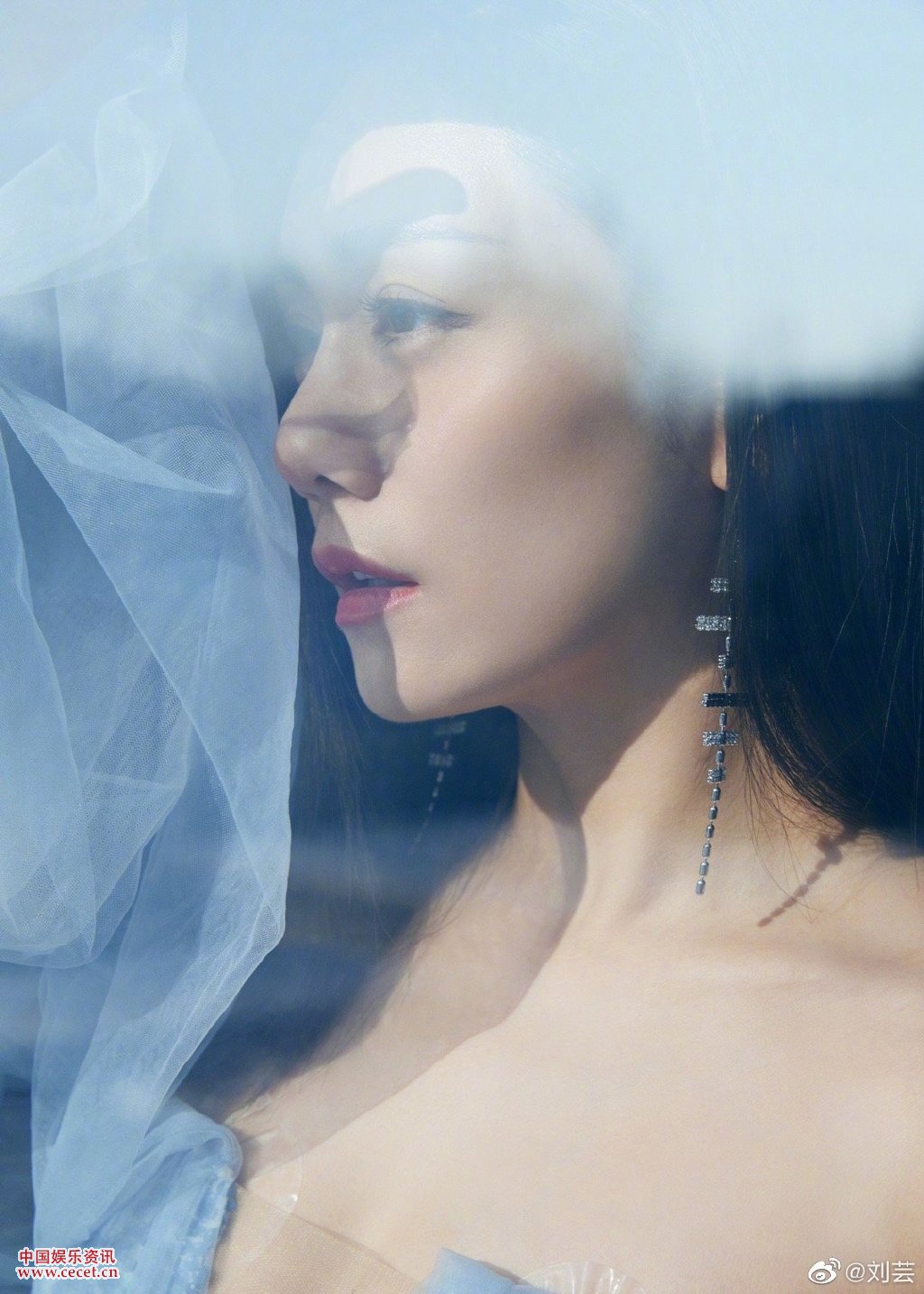 劉蕓一字裙高開(kāi)叉長(cháng)裙 白嫩香肩干練大方
