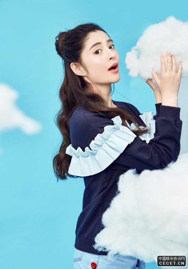 李心艾少女感十足寫(xiě)真 荷葉肩T恤蕾絲牛仔裙