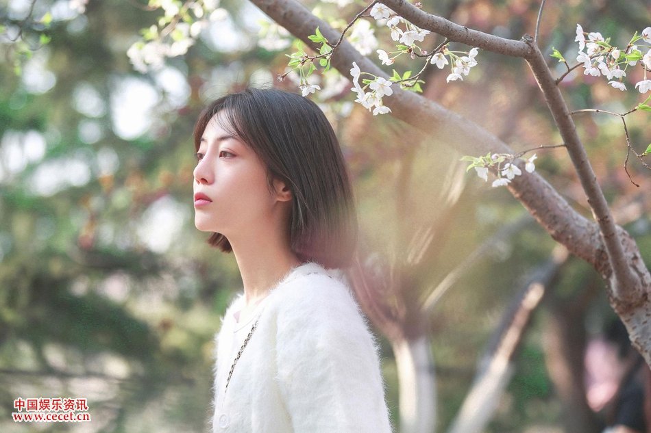 李溪芮針織衫素顏出鏡 櫻花樹(shù)下模樣令人心醉