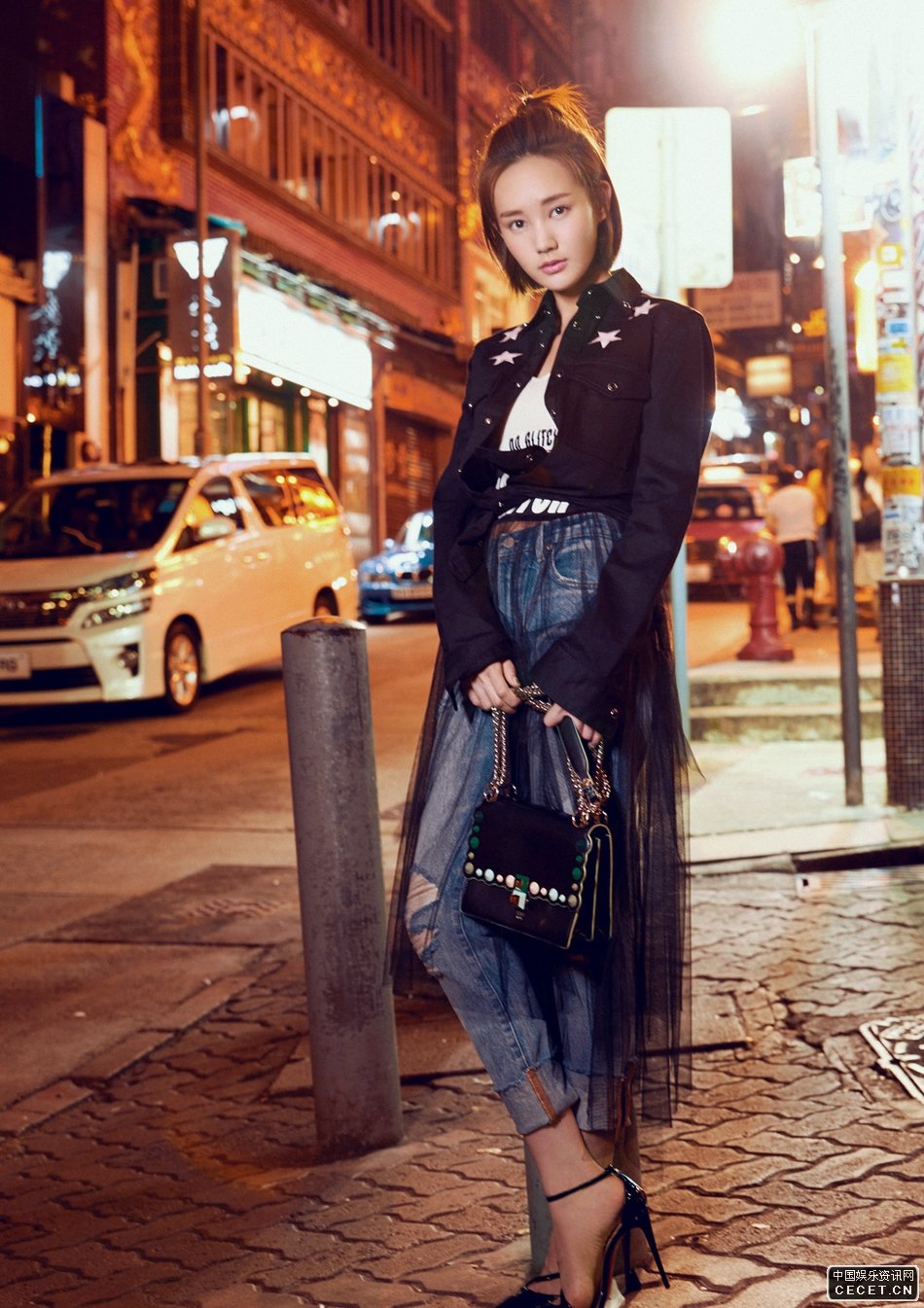 李一桐街拍都市感十足 喇叭袖襯衫搭配牛仔褲