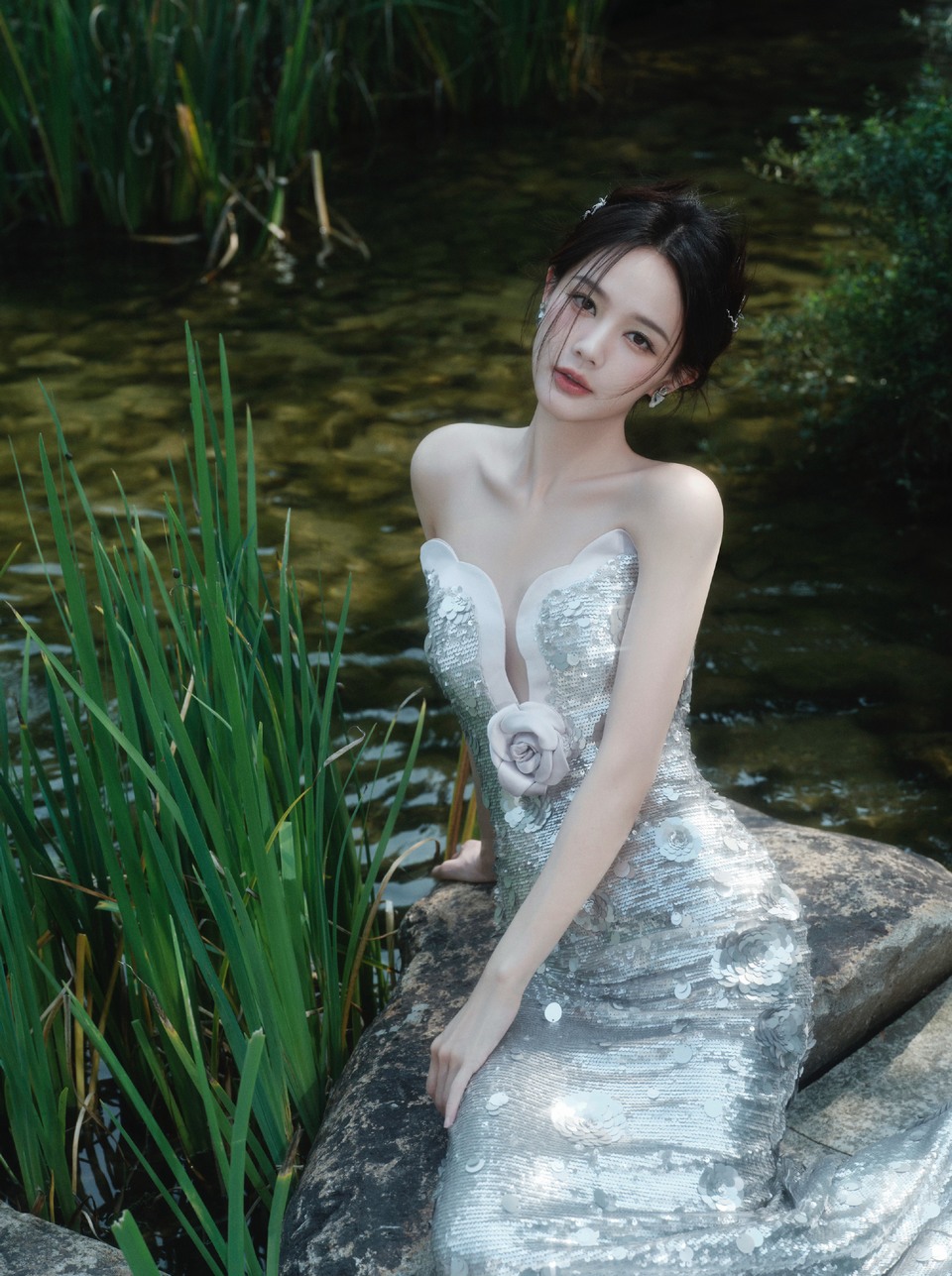 李一桐銀色立體亮片魚(yú)尾裙 絢爛光彩詮釋極致柔美
