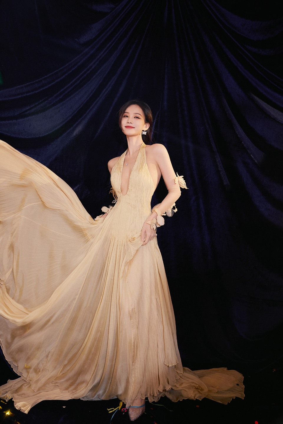 李一桐柔霧黃褶皺拖地長(cháng)裙 自信上場(chǎng)從容待發(fā)