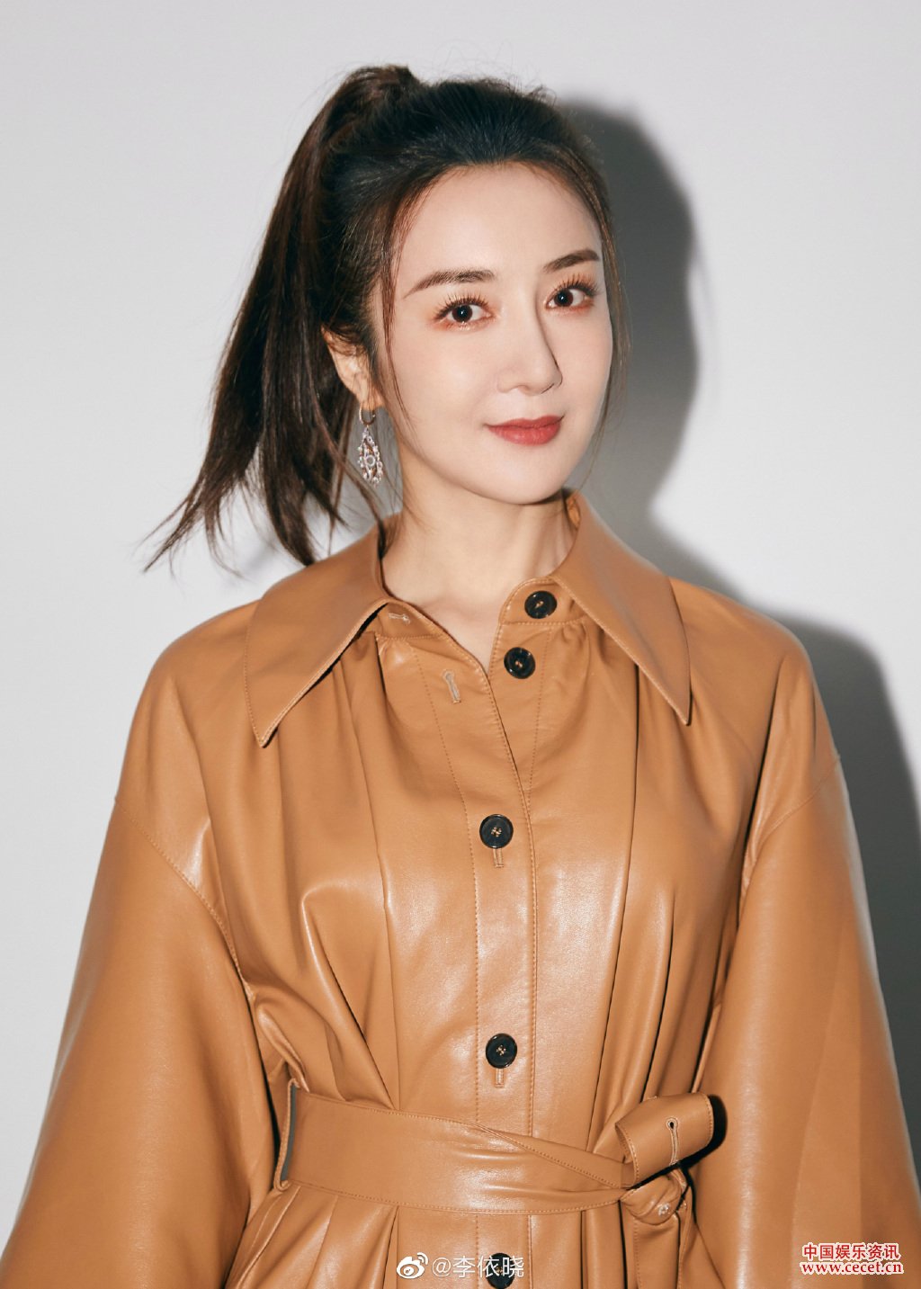 李依曉黃色皮質(zhì)大衣照 妝容淡雅利落不羈