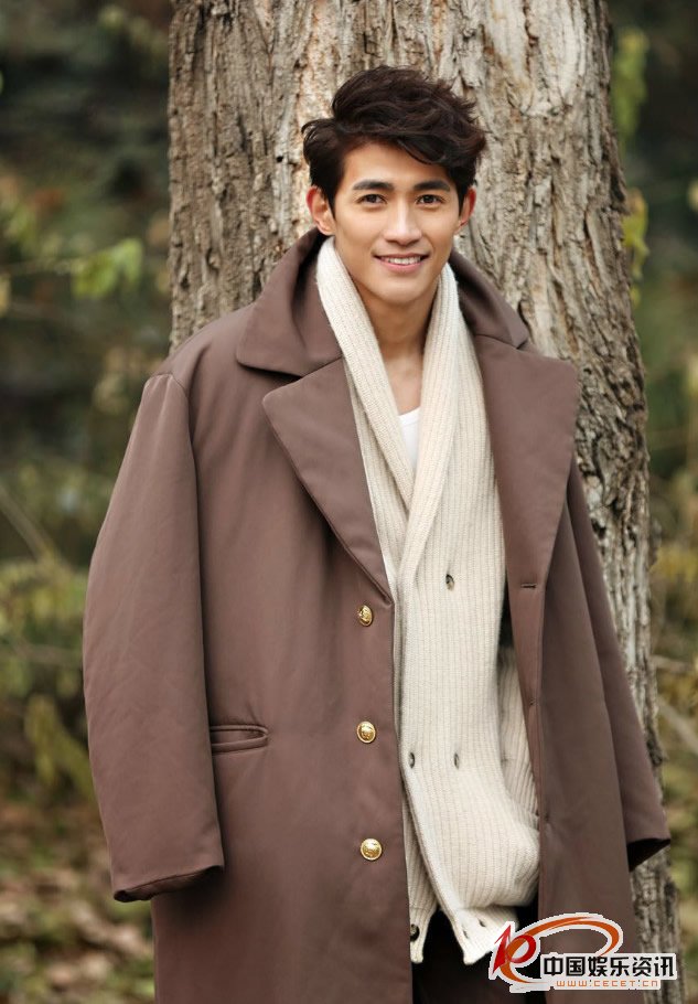李子峰戶(hù)外寫(xiě)真 米白色毛衣外搭棕色大衣