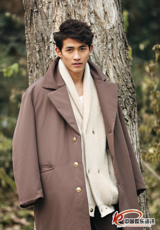 李子峰戶(hù)外寫(xiě)真 米白色毛衣外搭棕色大衣