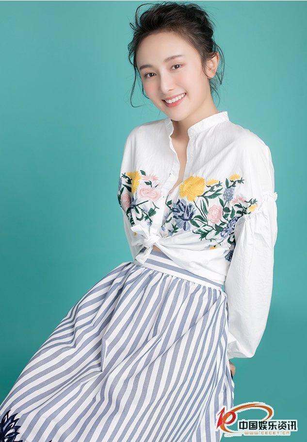 魯佳妮小衫條紋裙寫(xiě)真 笑容甜美清新自然