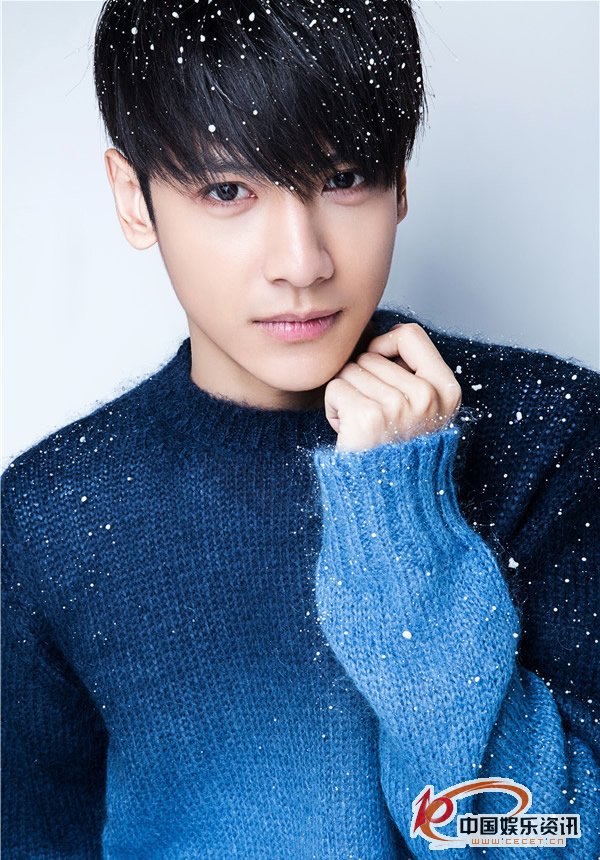 羅云熙漸變藍色毛衣在雪花下彰顯青春活力