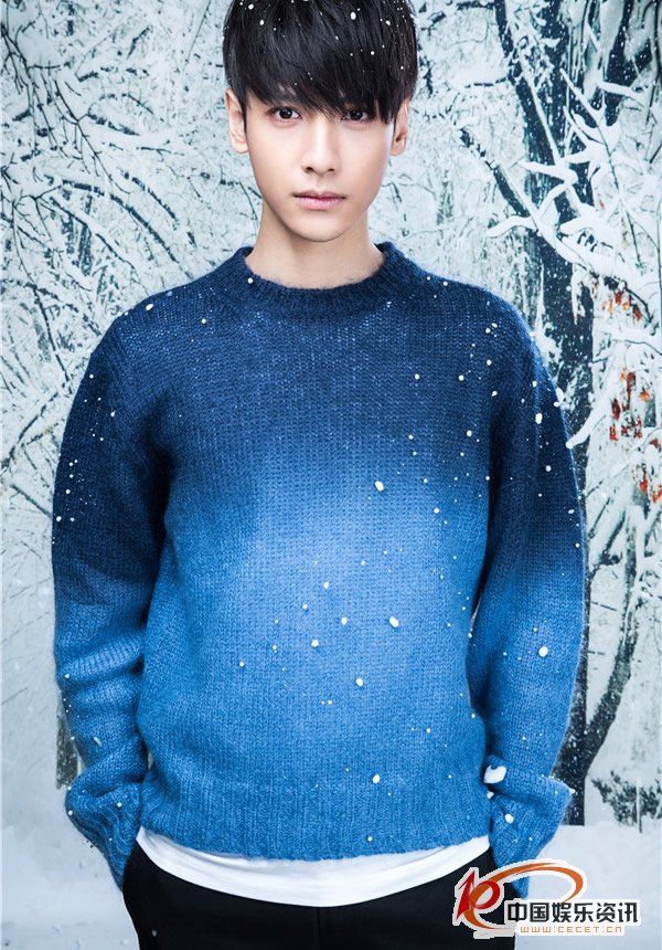 羅云熙漸變藍色毛衣在雪花下彰顯青春活力