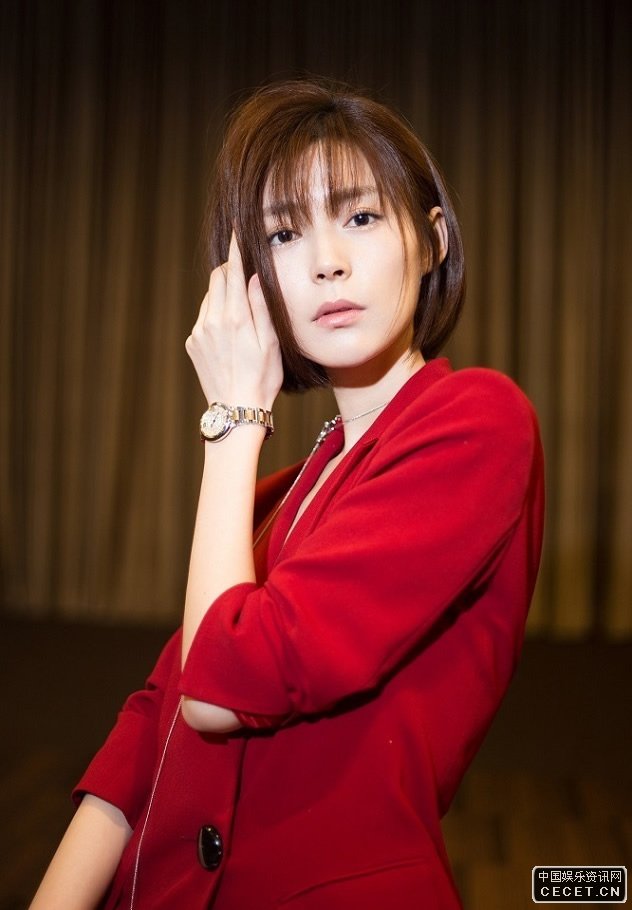 盧杉清爽短發(fā)紅衣寫(xiě)真 寓意著(zhù)新年紅紅火火