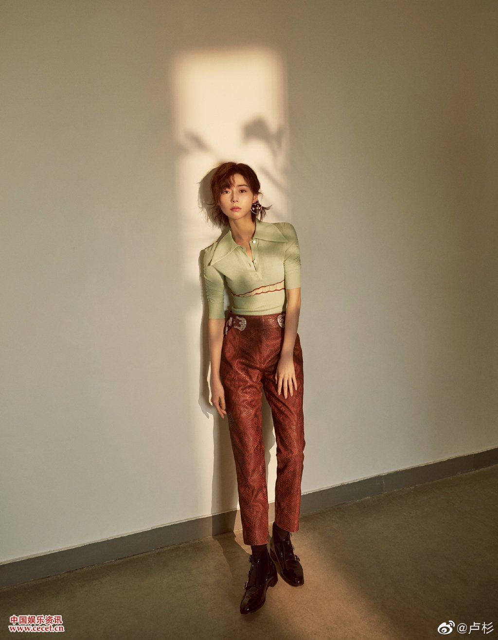 盧杉個(gè)性搭配休閑隨性 姿態(tài)慵懶顯出完美腰身