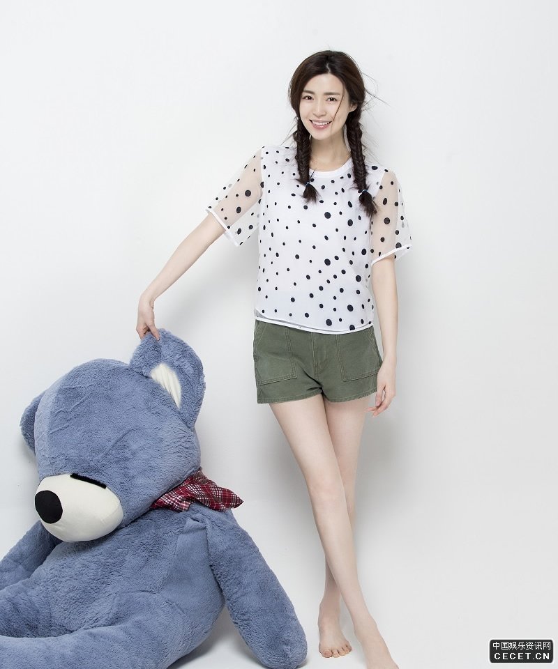 盧杉陽(yáng)光少女童趣十足 與玩偶小熊親密相擁