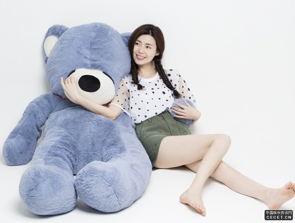 盧杉陽(yáng)光少女童趣十足 與玩偶小熊親密相擁
