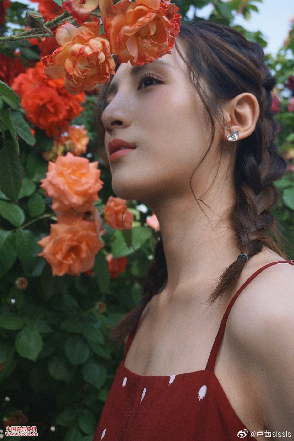 盧茜吊帶短裙花叢美照 雙馬尾更顯青春靚麗