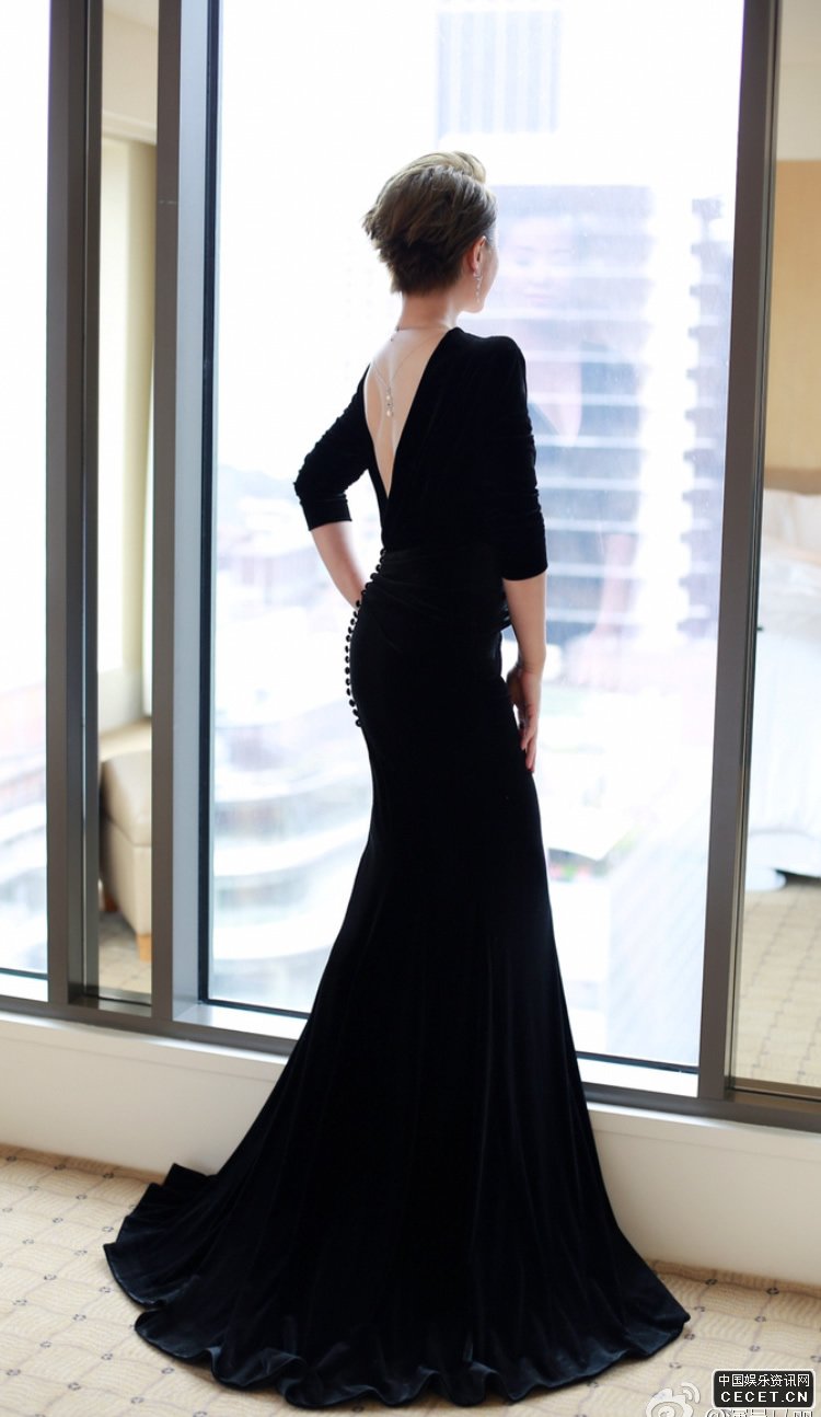 馬麗深V貼身長(cháng)裙靚照 S曲線(xiàn)裙擺開(kāi)叉至大腿根