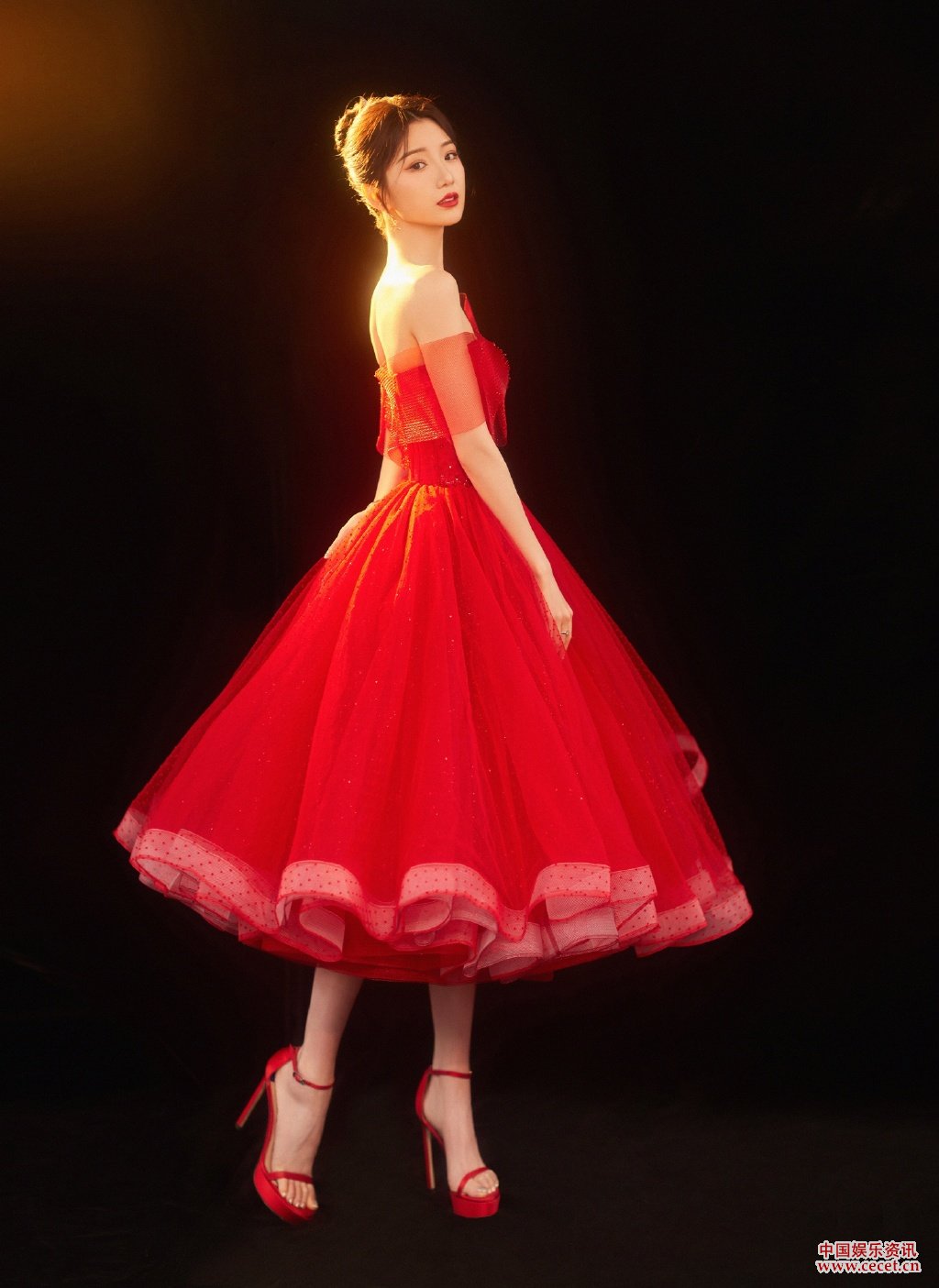 毛曉彤紅裙裝美若天仙 香肩白嫩翩翩起舞