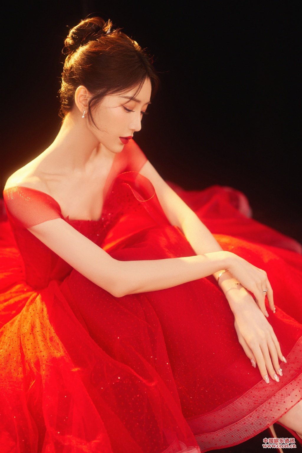 毛曉彤紅裙裝美若天仙 香肩白嫩翩翩起舞