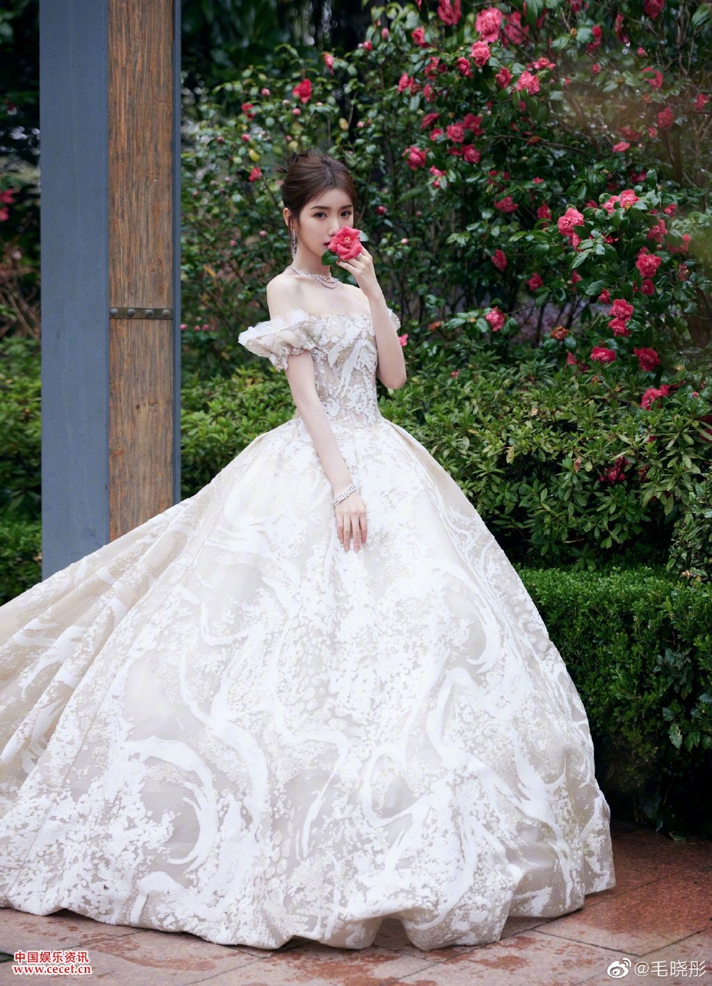 毛曉彤白色鳳尾禮服照 清涼惹眼如畫(huà)中仙女