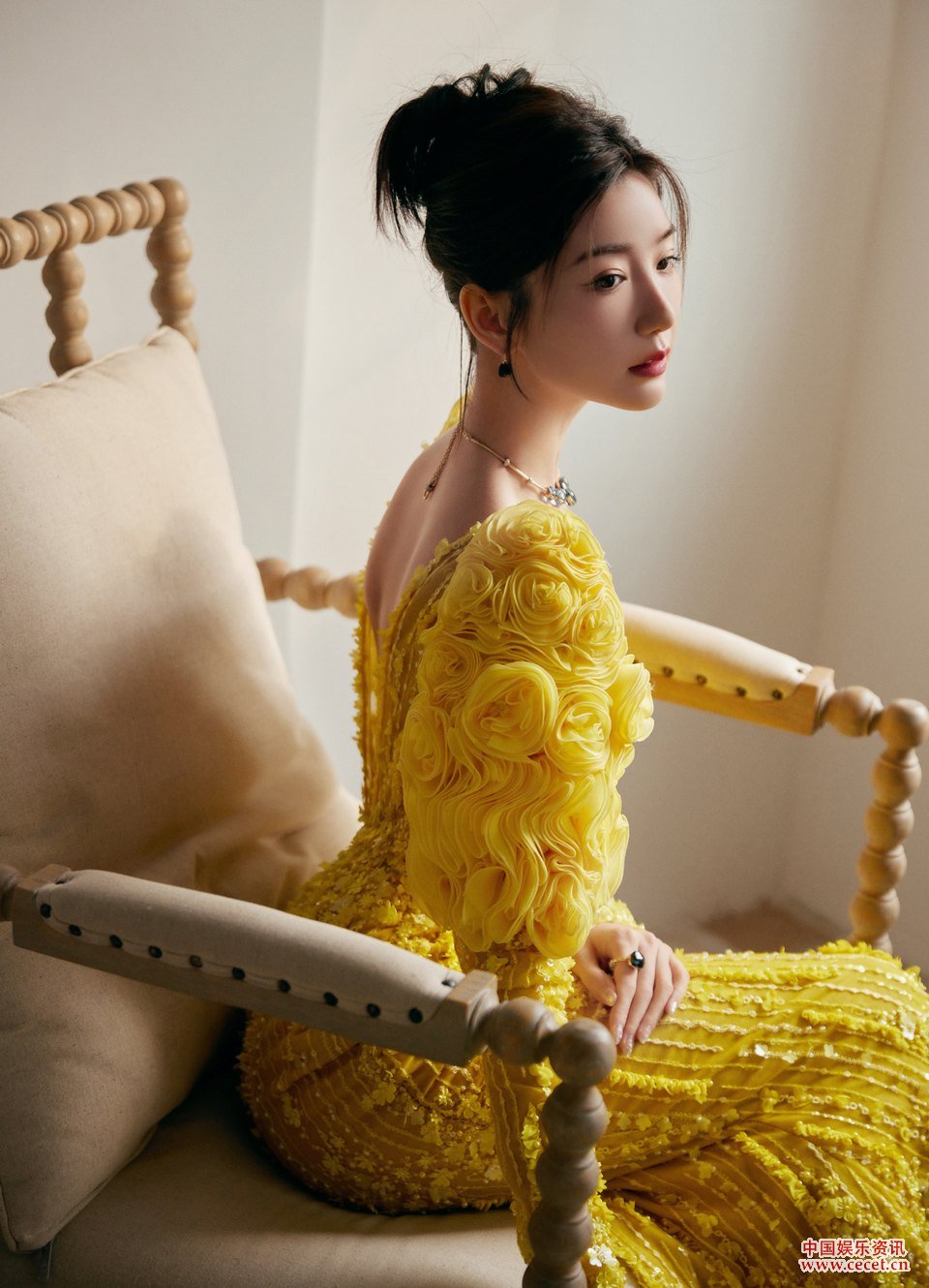 毛曉彤金黃色露背長(cháng)裙 落日余暉間盎然綻放