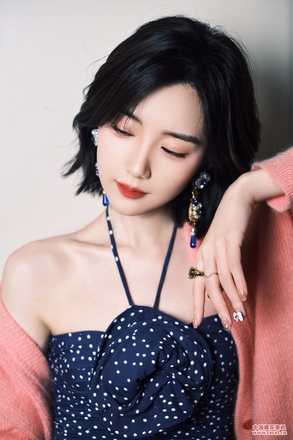毛曉彤甜粉系半熟女孩 內搭藍色裹胸短裙