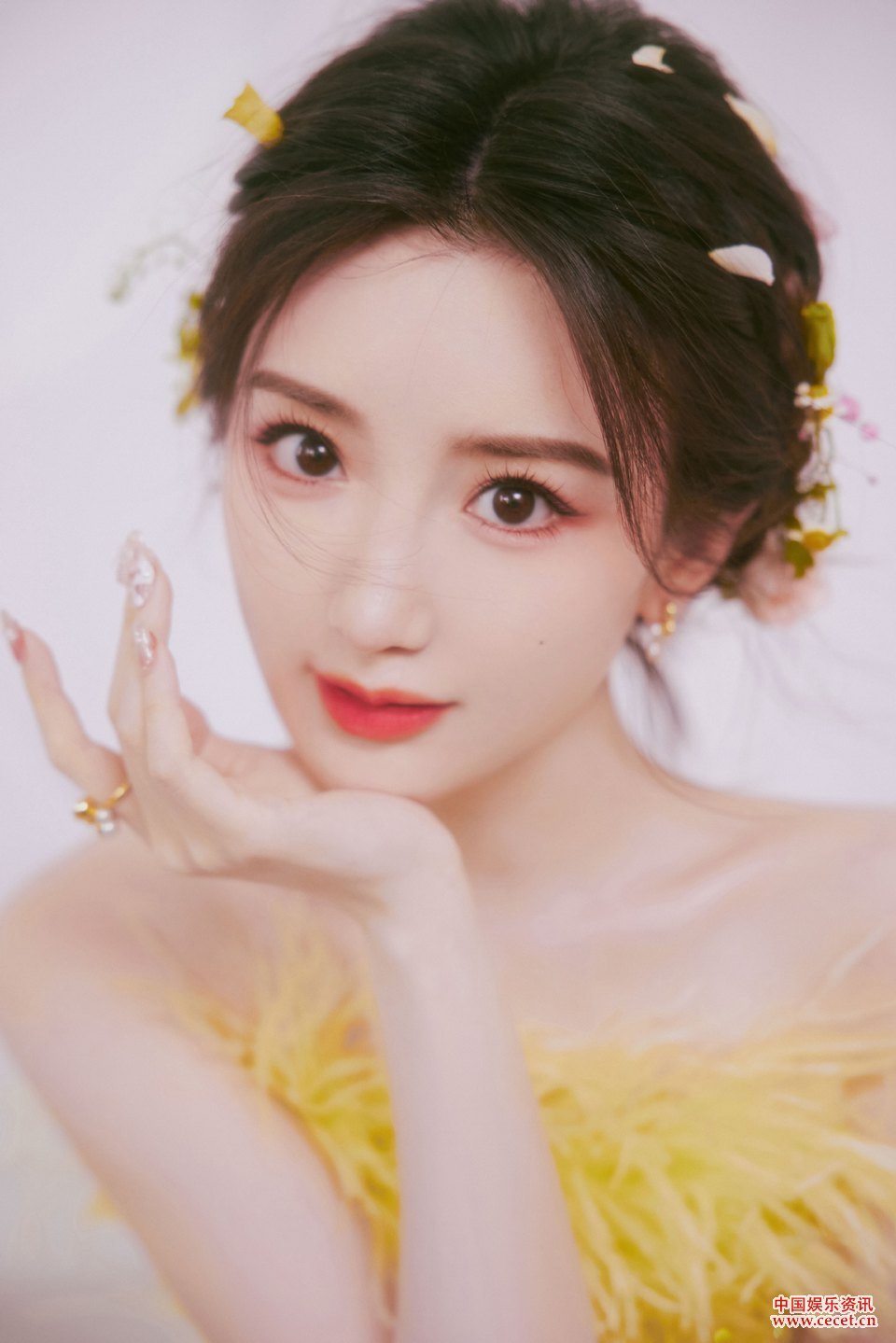 毛曉彤黃色羽毛紗裙 精致鎖骨增添優(yōu)雅溫婉氣質(zhì)