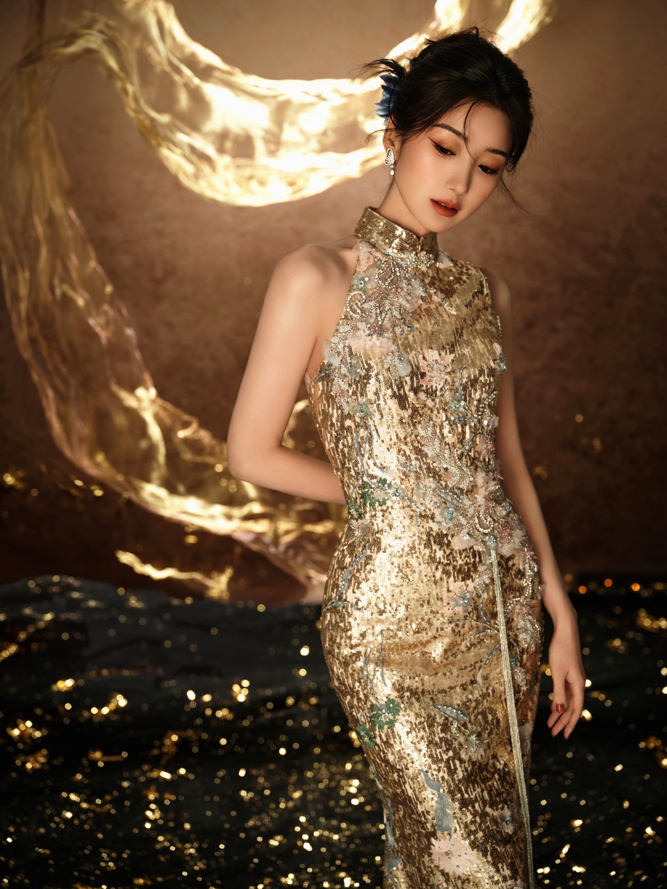 毛曉彤浮光掠影月灑裙身 于動(dòng)靜間感受熠熠金光