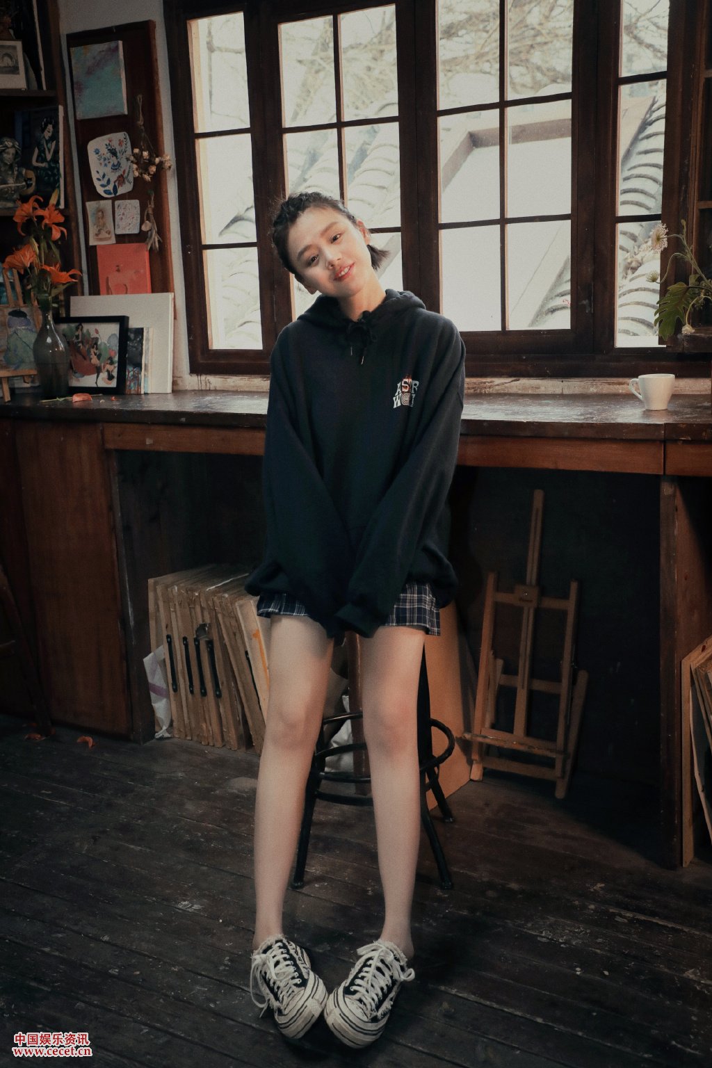 馬思純對鏡頭擺POSE 身穿黑色衛衣青春活力