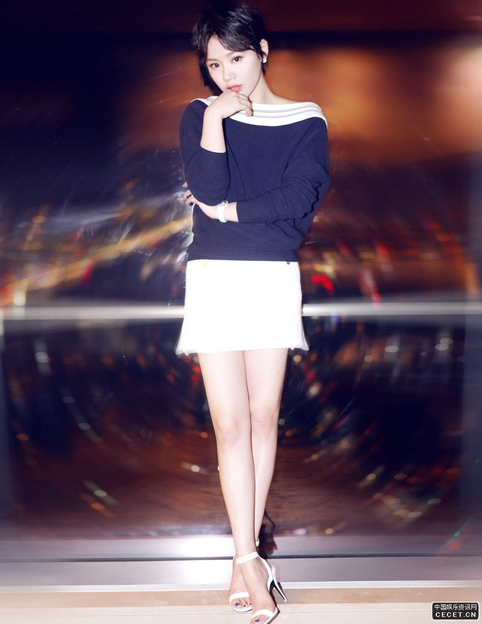 馬思純藍色露背上衣搭配白色短裙亮相紅毯